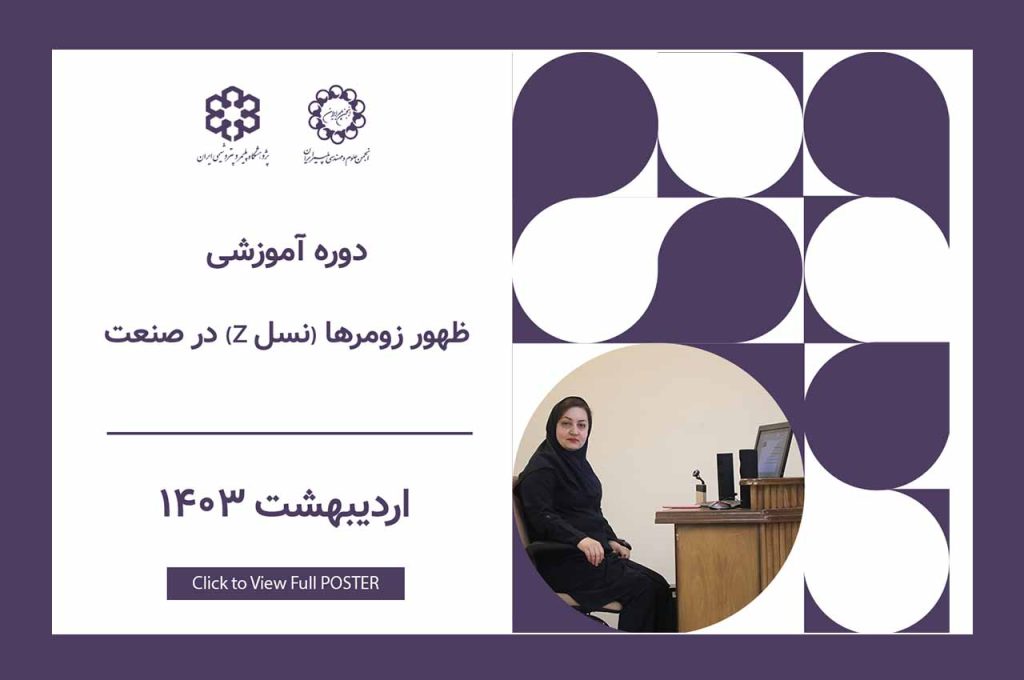 دوره آموزشی ظهور زومرها (نسل z) در صنعت، یکشنبه 30 اردیبهشت 1403 توسط خانم دکتر رویا مشایخی در پژوهشگاه پلیمر و پتروشیمی ایران برگزار شد.